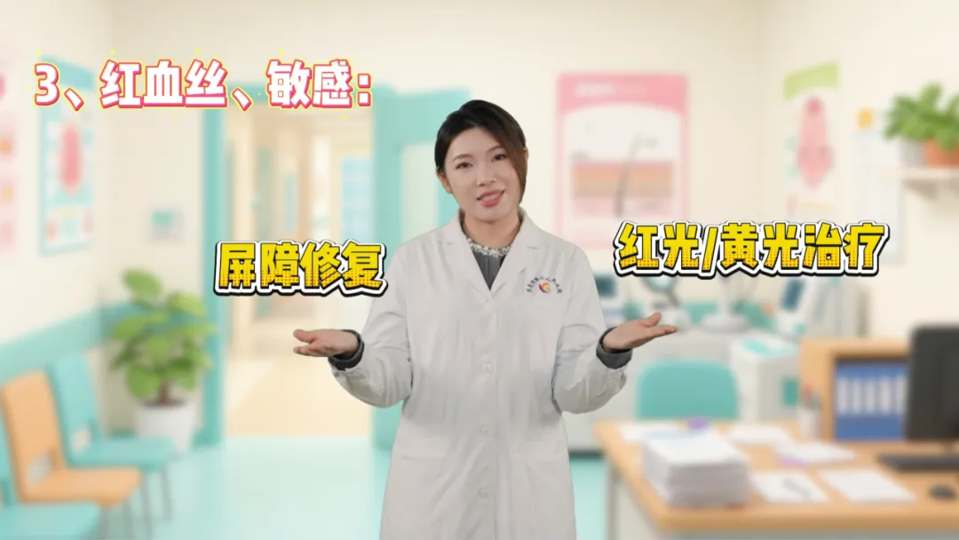 红血丝、敏感:红光/黄光治疗+屏障修复,能够让你的皮肤状态稳定发挥。