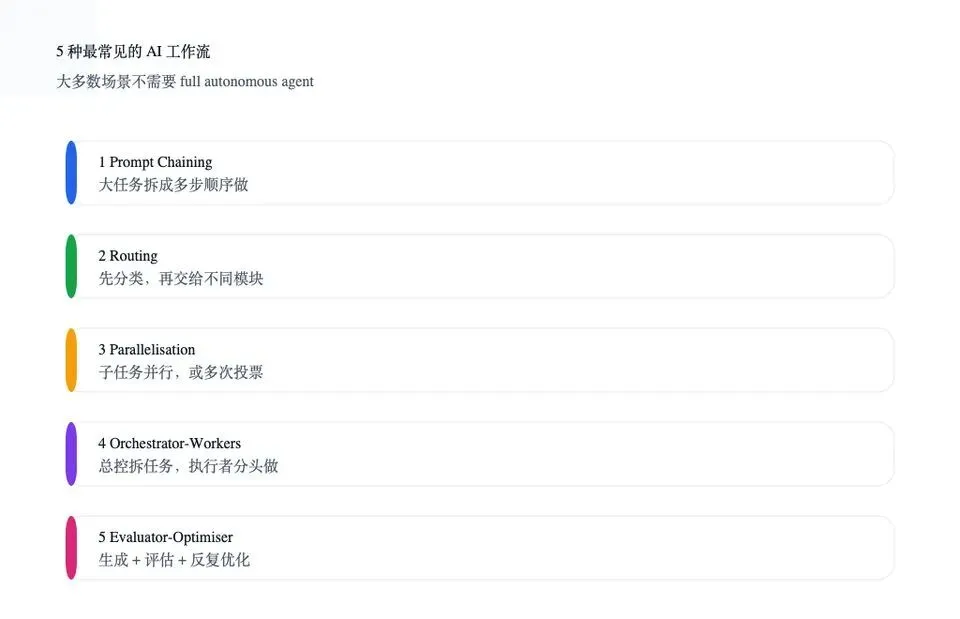 图 3:先学会这 5 种模式,再决定什么时候真的需要 full autonomous agent。