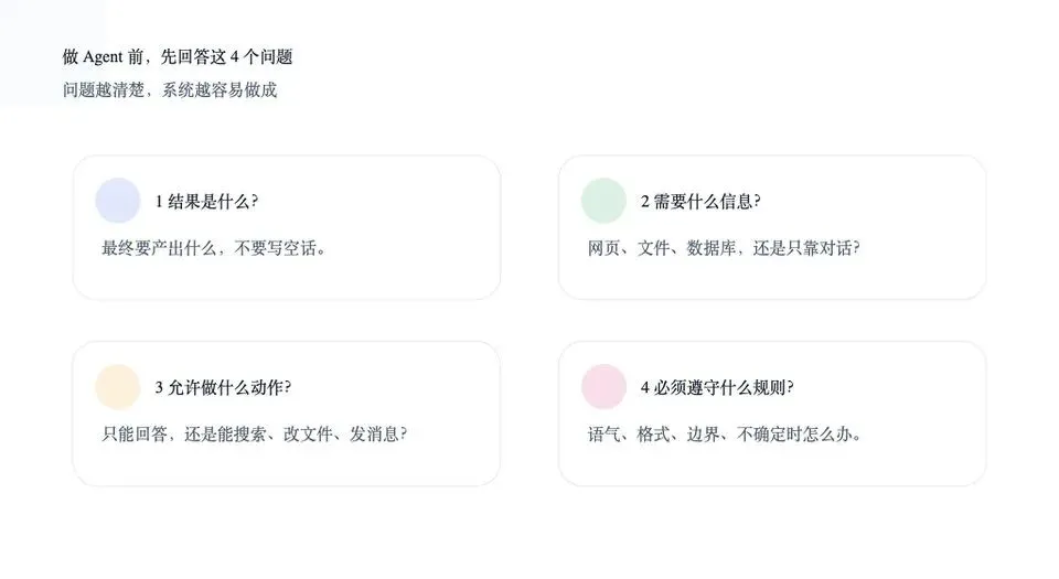 四、做第一个 Agent 前,先回答这 4 个问题