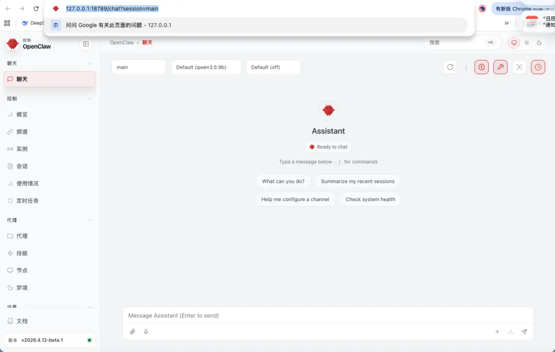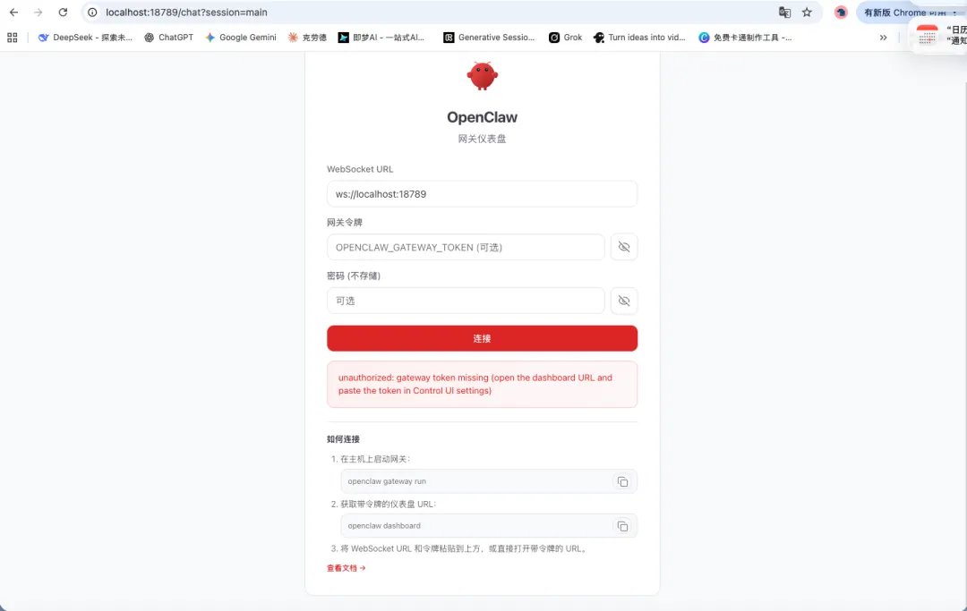 浏览器访问 http://localhost:3000,就能正常使用 OpenClaw 了
