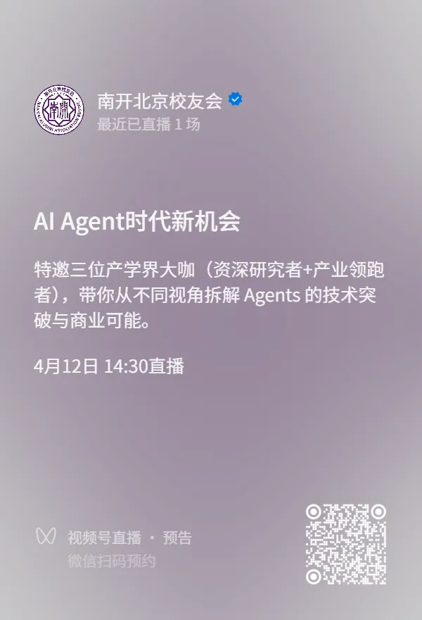 AI 浪潮奔涌,Agent 成为焦点。4月12日(周日)14:30,香港南开校友会、南开北京校友会联合主办线上直播活动,聚焦 AI Agents 的前沿趋势与实践落地。