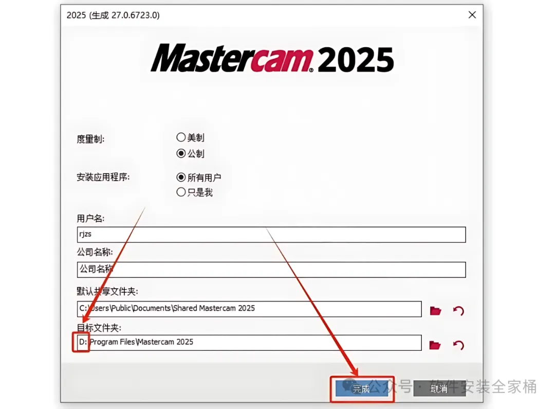 8.软件默认安装路径为系统C盘。设置软件安装路径的话,直接将盘符C改为D或者其它磁盘即可,然后点击【完成】。