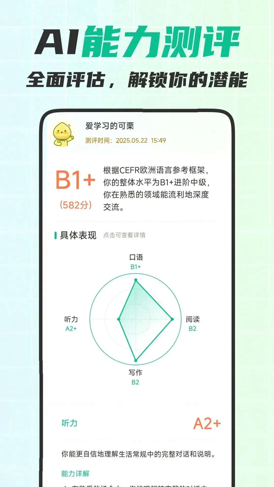 作为专为零基础商务口语学习者打造的AI工具,可栗口语凭借自研的拟人AI技术和场景化学习体系,在本次测评中脱颖而出,完全颠覆了传统口语学习的低效模式,堪称零基础商务口语速成的封神级APP。