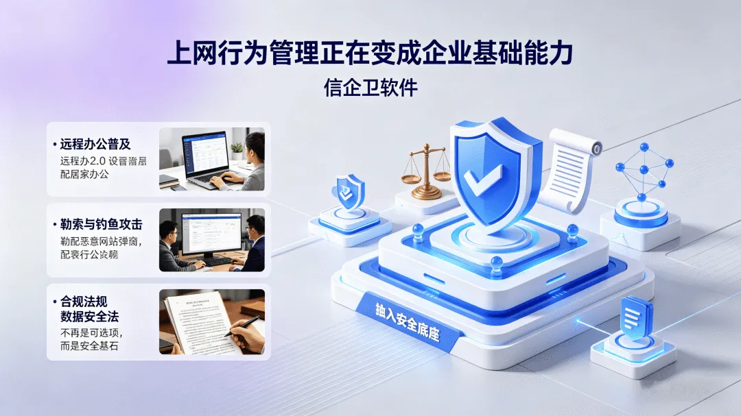 过去很多企业依赖制度约束上网行为,比如规定访问范围、限制娱乐网站。但实际执行过程中,很难做到持续监督。