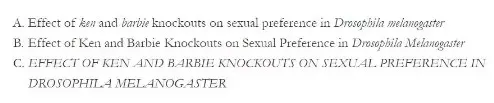 Title 的句子中仅首字母大写(C 项绝对不可取,都大写和都不大写并没有什么区别……)。