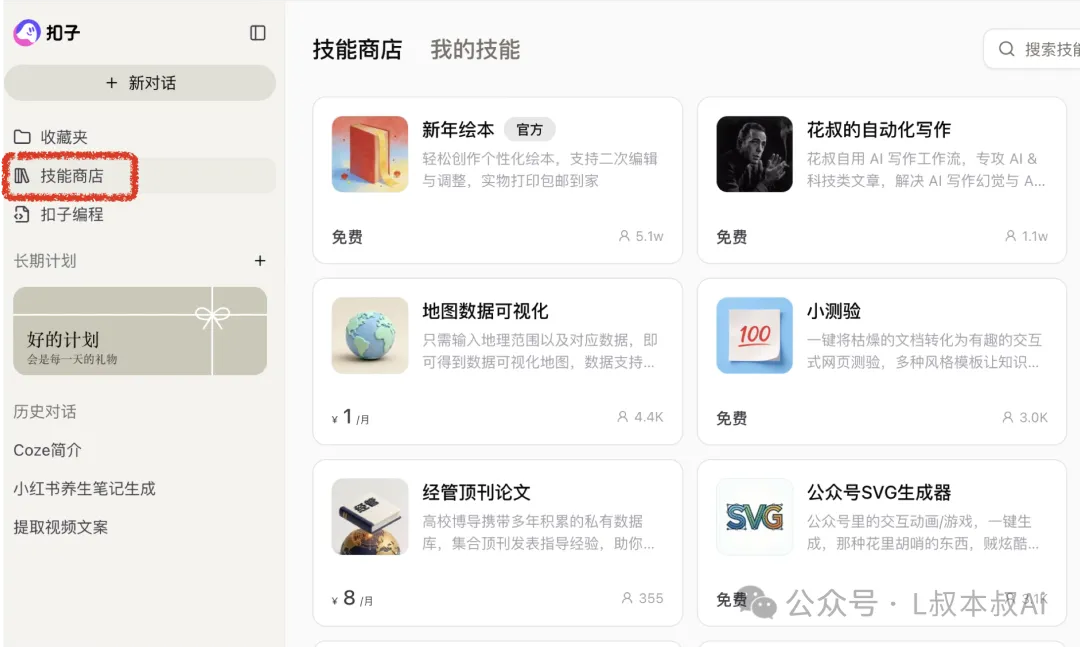 Coze上面的技能商店里的技能有非常多很有趣的,大家都可以去耍耍,我这里就不做太多展开了。