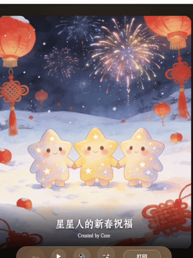 接着我在文本框里输入:请你帮我生成一套星星人新年绘本故事