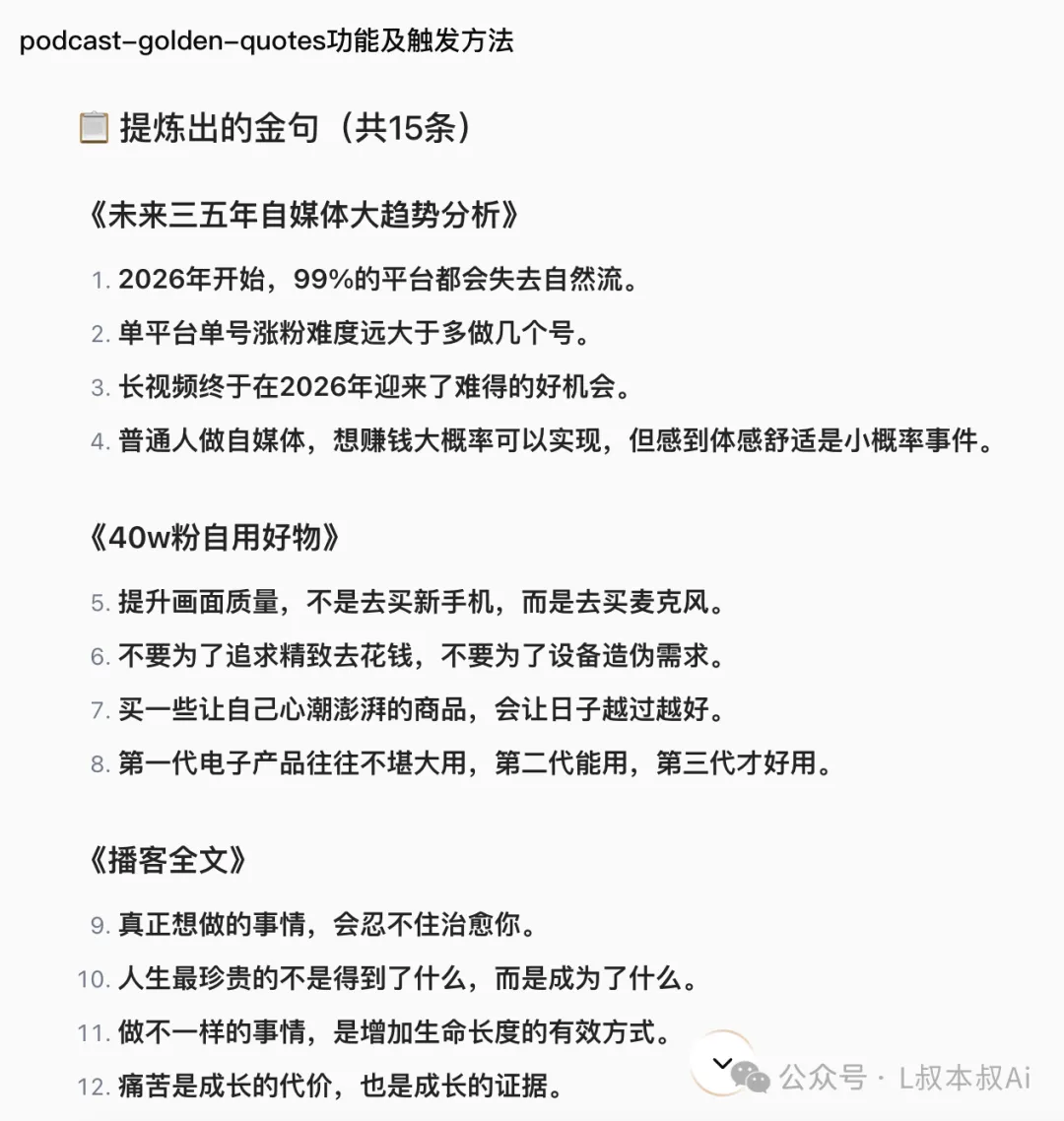 请你利用金句生成技能,帮我处理这个三个音频文档