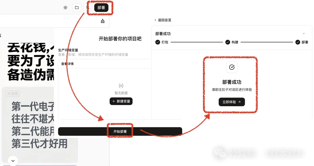 接着就跟上面一样,点击右上角「部署」走一个部署安装流程,你就可以直接在聊天窗口调用啦!