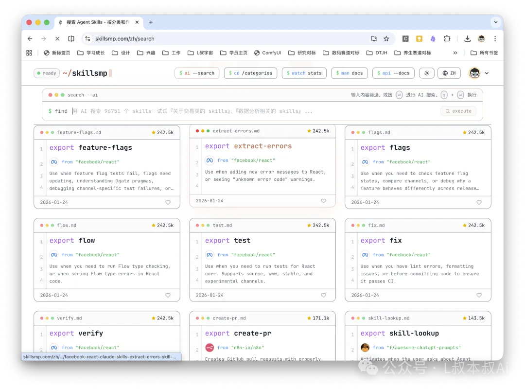 比如在Skillsmp这个网站中,有很多别人开发好的技能