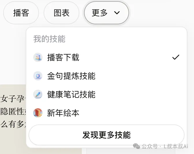 接着你就可以在主页聊天窗口的更多下面找到你刚刚安装的技能了