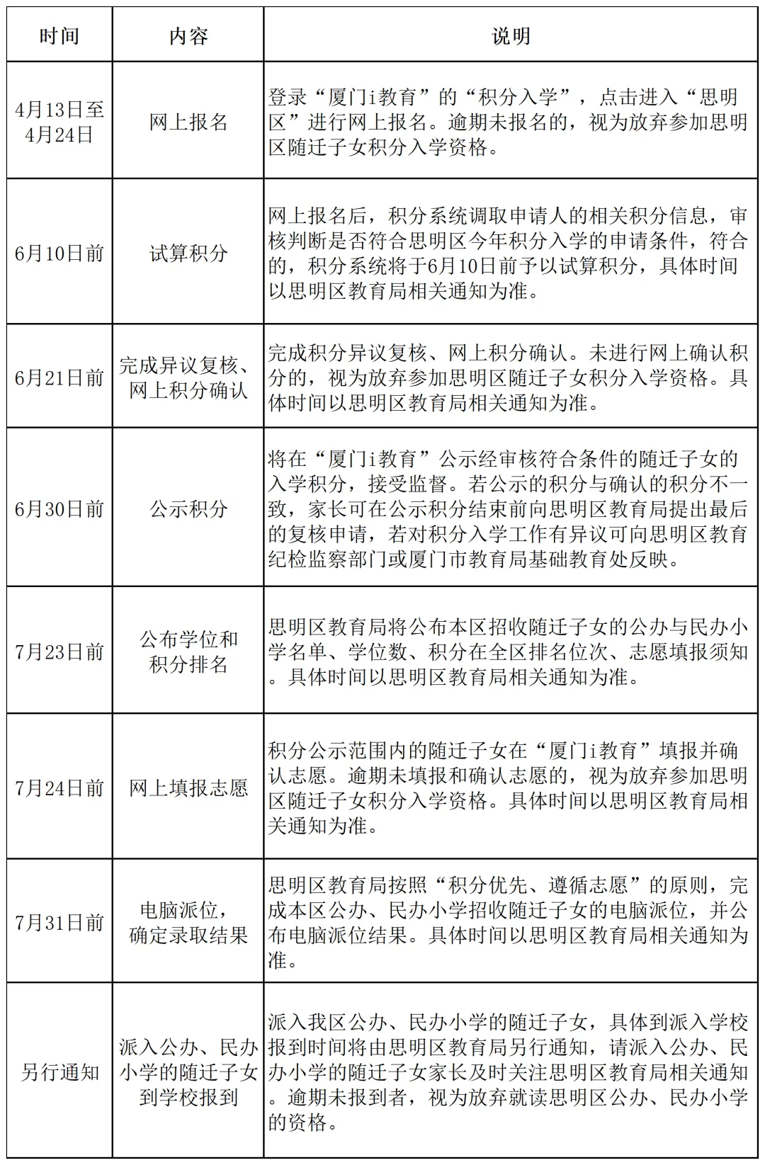 ●温馨提示:思明区教育局将于各阶段工作前及时发布相关通告,重要事项还会推送短信到随迁子女家长手机上,请及时关注。