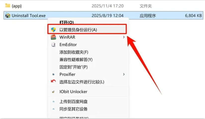 步骤 3: 鼠标右击【Uninstall Tool.exe】选择【以管理员身份运行】。