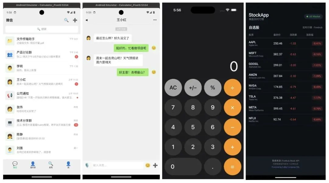 从开头的截图相信大家也能有所感受,其实很多情况下已经超出了我的预期。它不仅可以自行完成页面搭建,甚至在逻辑以及网络请求等方面也能妥善处理。比如开篇图中的股票市场App,它并非一个静态Demo,而是一个有真实网络请求的跨平台应用,龙虾自动找到了免费可用的服务,我在过程中所做的仅仅是给它提供了一个真实可用的API Key。