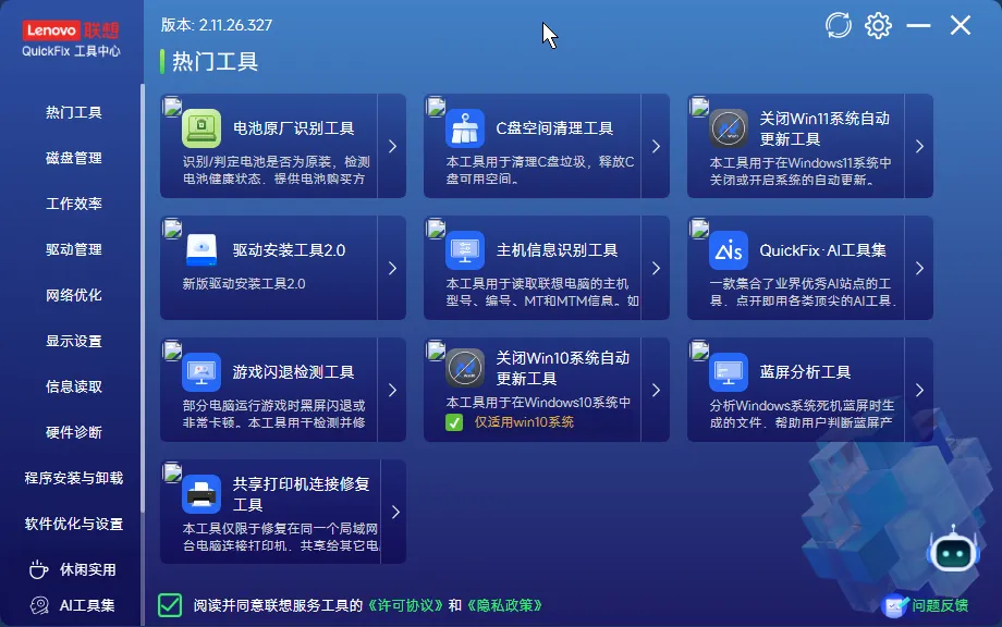 前两期给大家介绍了几款实用的系统工具,包括硬盘检测、主板检测等等,今天要给大家分享的这款工具是联想官方出品的,涵盖了工作效率、系统优化、问题解决等工具软件。它是电脑必备的维修工具箱,不管是电脑维修店的同学、还是自己解决电脑问题的同学,都可以保存下来以备使用。