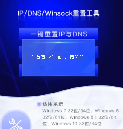 对系统的IP地址,DNS服务器和Winsock进行快速重置。