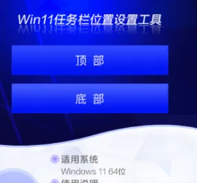 本工具用于快速设置Win11任务栏到桌面顶部或者底部。(某些版本系统无效)