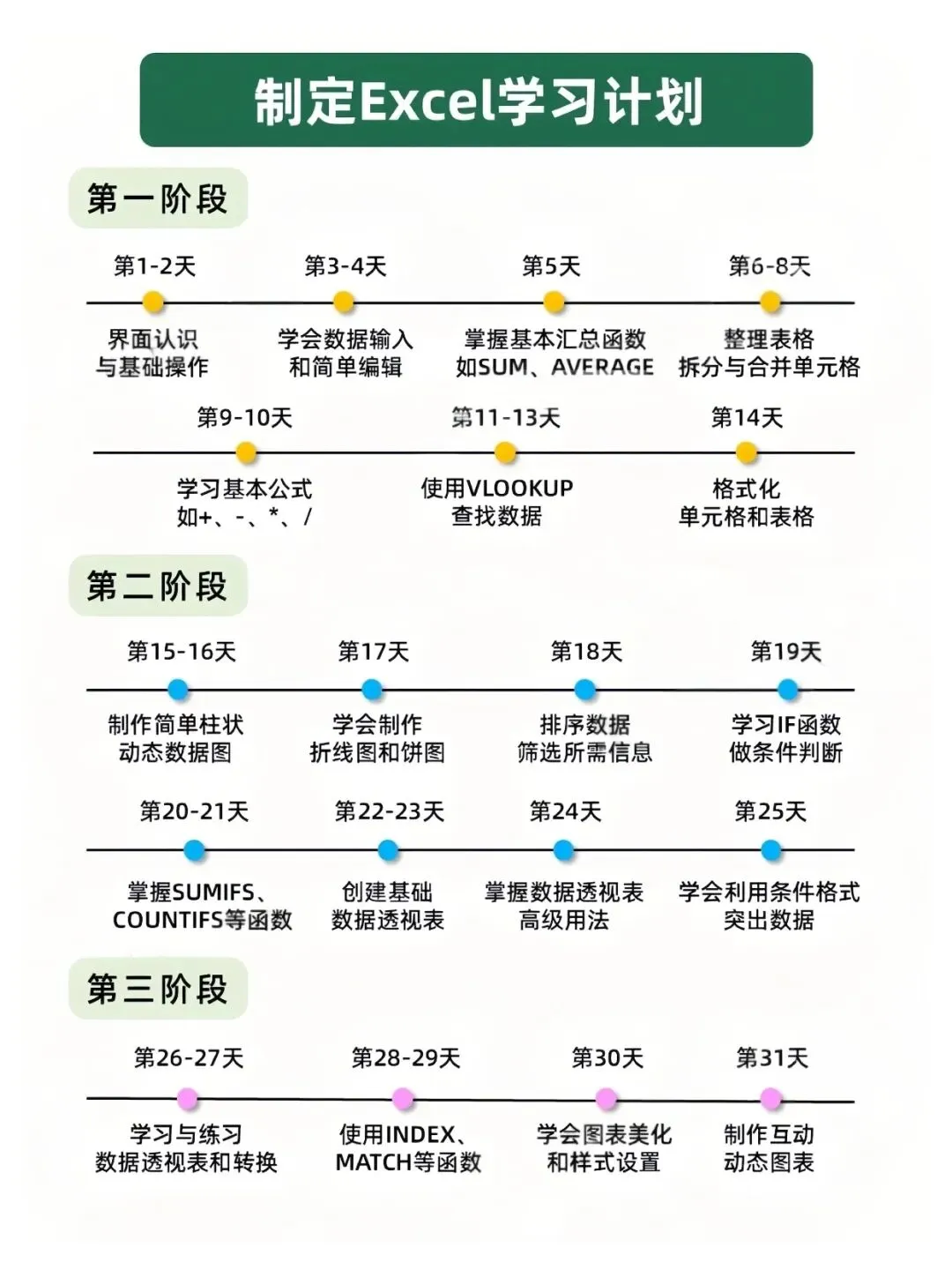 今天给大家整理了系统学Excel的顺序📊
