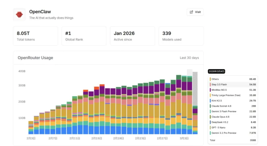 图:OpenClaw的Token 消耗量(截至2026/3/4)