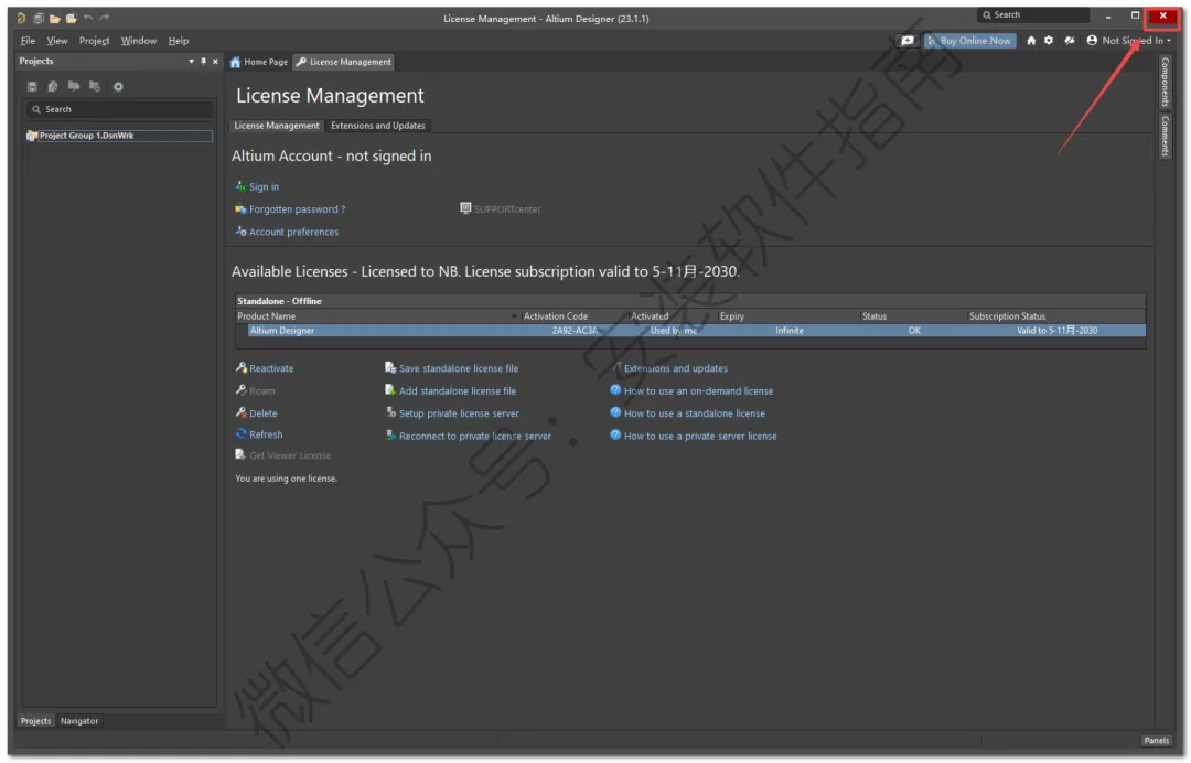 16、点击菜单栏中的“Not Signed In”,选择“Licenses ...”