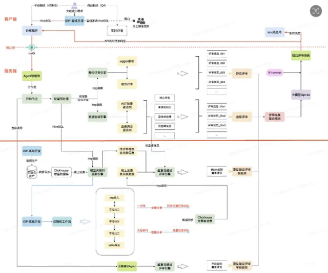 智能评审层:由大模型 Agent 结合结构化元数据与知识库,进行多维度的逻辑判断。