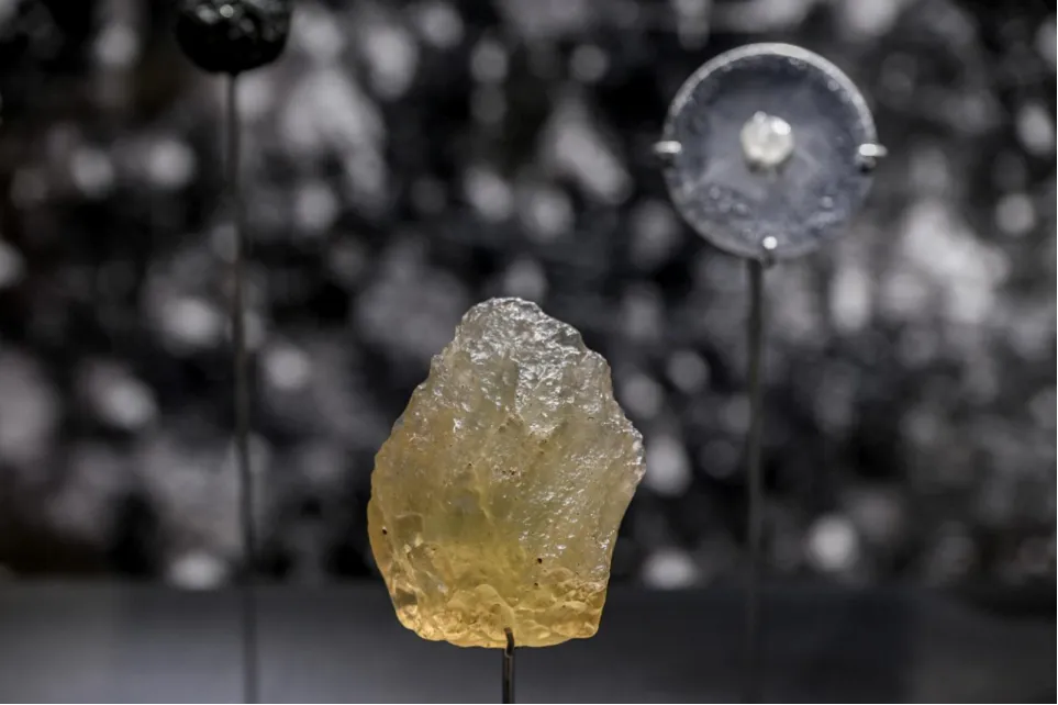 在这些黝黑的陨石旁,一块黄色的石头显得格外特立独行。这种被叫做利比亚沙漠玻璃(LDG)的物质是地球表面最纯的天然玻璃之一,也是一次外星物质和地球疯狂接触的产物。