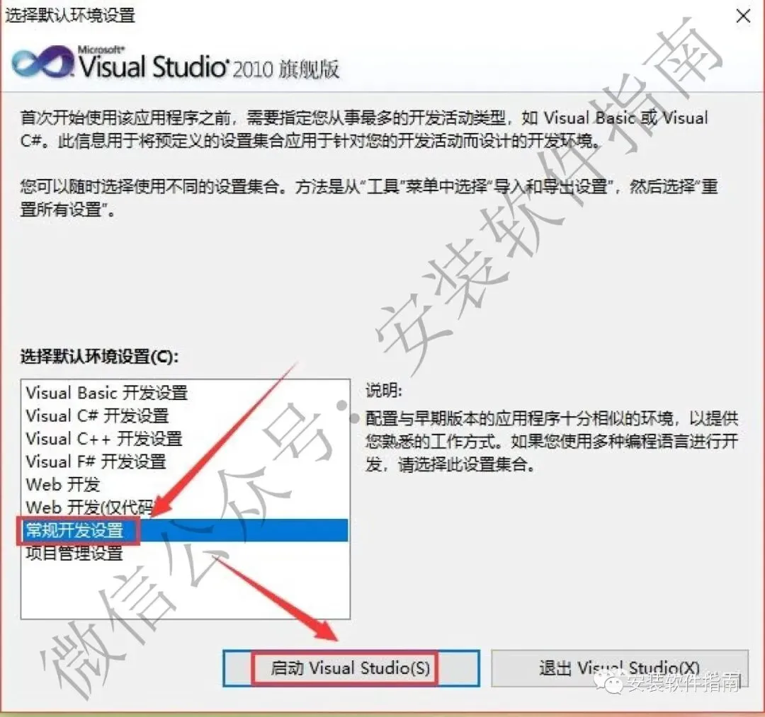 16.点【Visual C++开发设置】(图中选择有误),点【启动Visual Studio】