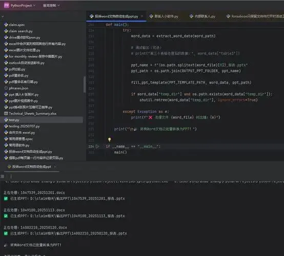 Python 批量将同样模板的word内容转换成ppt(代码都有AI生成,思路自己的)