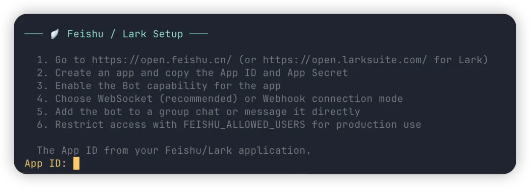 4、给 Hermes 设置飞书 App