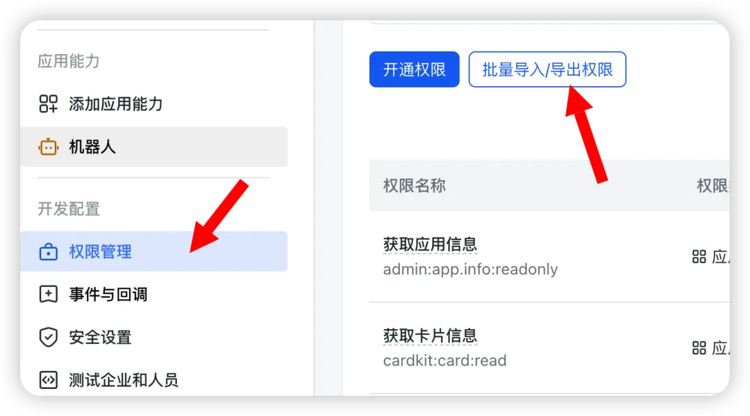 权限管理 → 批量导入/导出权限,可以直接 json 一键导入:
