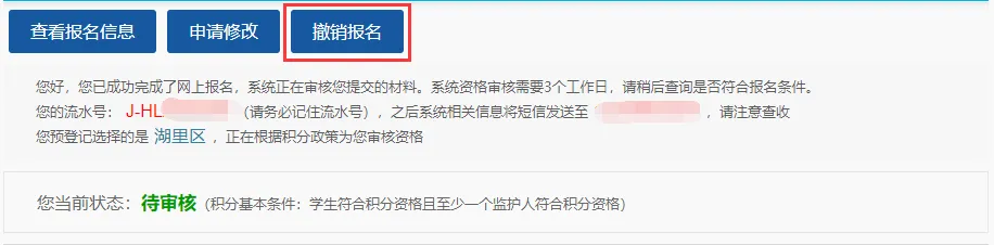 因个人原因,自愿放弃参加积分入学,可点击“撤销报名”。