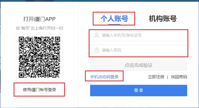 ②如果有注册过“i厦门”账号的,可点击“使用i厦门账号登录”。