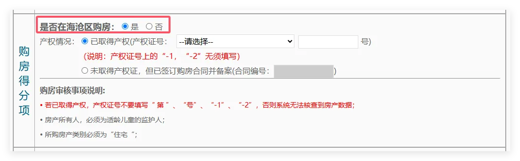 如果在海沧区没有购房,选择【否】即可。如果有购房,选择【是】,并根据房产情况认真填写房产信息。