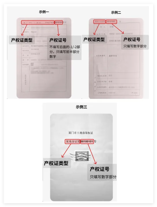 ①产权证号的位置就在产权证第一页的第一行,产权证号或合同编号若有英文字母请用大写。
