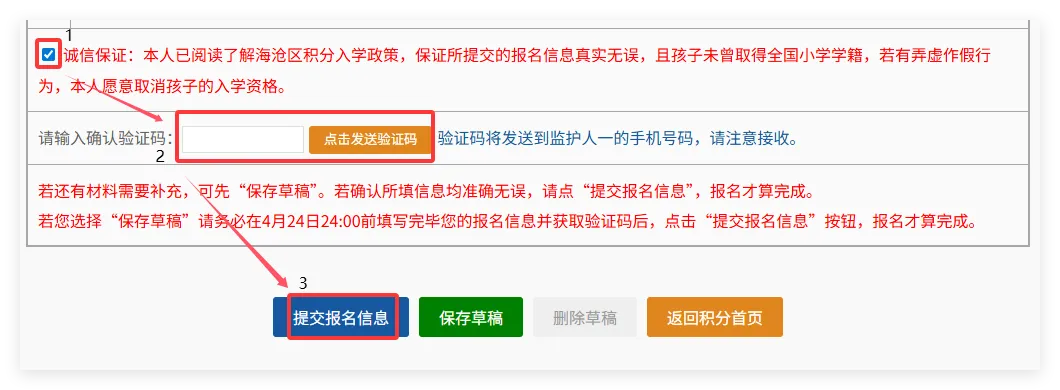 ②系统所发送的短信验证码以及后续的短信通知,都将会发送到登记的“监护人一”的手机上,家长须确保在监护人一信息栏所填的手机号码能及时查收短信通知。