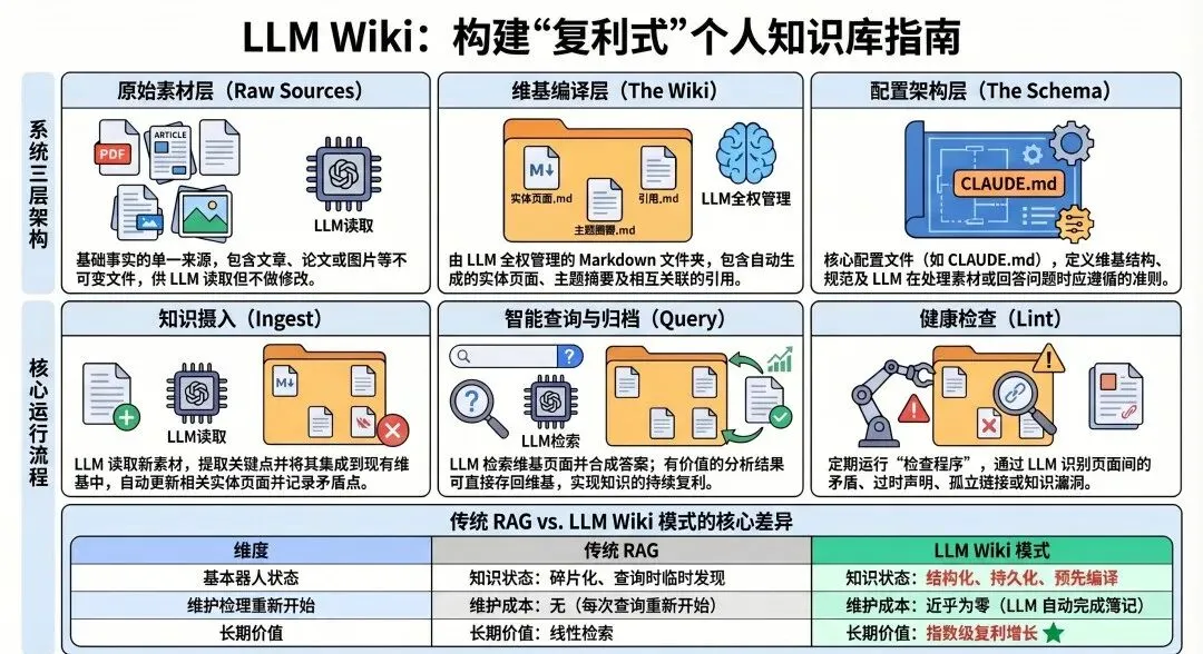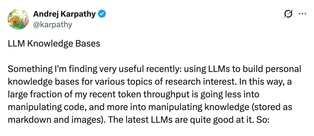 你有没有过这种经历:之前让豆包生成了一稿方案,你觉得非常好。过了1个月,你有类似的任务,想再让豆包生成一个类似的,却再也生成不出那么满意的。你记得上个月和豆包聊了好久,最后才打磨出来的一个方案,但当时的聊天已经淹没在茫茫多的日常对话中了。你也没办法再重现当时的讨论场景了,只好退而求其次,使用现在那版没那么满意的方案。前段时间,前OpenAI科学家、特斯拉AI前负责人Andrej Karpathy(卡帕西)在X上发了一条长推文,分享他自己搭个人知识库的工作流。其中有句话让我停下来想了很久——“The wiki is a persistent,compounding artifact.” 知识库,是一个持续复利积累的产物。他还说:每一次探索、每一次提问,都会叠加进这个知识库里,越用越厚。这句话正好戳中了我的一个困惑:AI这么好用,我还需要自己维护知识库吗?当我每天至少用掉500万Token后,我才发现在AI时代,个人知识库的价值反而更大。AI替代不了的,恰恰是这三件事01 你的私有知识,AI根本够不着AI能回答你任何公开的问题,但它完全不知道你做过什么。你上个月跑的那场客户调研会议,你整理的行业一手数据,你踩过的坑和总结出来的经验——这些东西既不在互联网上,也不在任何AI的训练集里。要用的时候,AI给不了你。有人会说:那我把资料喂给AI不就行了?可以,但每次用都要重新上传、重新交代背景,AI没有记忆,上次的对话下次全忘。相当于每次对话,都是从0开始搭建一套Harness系统。不知道Harness的可以补个课:Harness:AI 真正干活,靠的不只是模型。但光说「有数据、调不出来」可能还不够具体。我举个实际的场景:你去年做过一个销售激励政策,花了三天整理,最后形成了一套判断框架—什么情况下新签客户的提成更高,什么情况在要提升销售的续约提成。现在新来一个项目,你想重新用起来,但那份文档存在哪儿?是那个笔记App?还是当时随手发给文件传输助手的微信?还是在某个邮件附件里?你记得有,但找不到具体在哪。然后你就只能靠脑子里的模糊印象重新拼——或者干脆让AI帮你重新生成一个「通用框架」。但那个框架是通用的,不是你的。你花三天踩出来的判断,AI一秒就抹平了。这部分知识,只能存在你自己手里。用的时候调不出来,等于没有。02 AI给你的,永远是「通用答案」这是一个更隐蔽的问题。AI的输出是基于全网的通用知识拼出来的。它不知道你的行业积累,不知道你的判断框架,更不知道你在某个具体项目里踩过什么坑。举个让感受更直接的例子:年终总结。假设你和同事同时让AI来写,你们给的 prompt 差不多,都是“帮我写今年的年终总结,突出亮点和成长”——然后呢?AI给你的,是一篇结构完整、措辞得体,但可以套在任何人身上的文章。什么“深入参与了多个项目”、“在团队协作中发挥了重要作用”、“持续提升了专业能力”——每一句话单独看都成立,合在一起,却不是你,是任何一个说得过去的职场人。现在换一个人,他手边有一份积累了三年的项目笔记——每个项目结束后写的复盘,踩过的坑,当时的判断和后来的结果,以及一些只有他自己才懂的上下文。他把这些资料调出来,让AI帮他整理和提炼,最后出来的年终总结,里面有真实的项目名、具体的数据变化、他自己当时做了什么决策、带来了什么影响。两份总结放在一起,差距一眼就出来了:一份是模板,一份是经历。AI是放大器,但它放大的是你已经有的东西。你没有积累,它放大的就是通用——而通用,在这个AI人人都能用的时代,几乎等于没有竞争力。03 内容存在别人平台,随时可能失控关于这件事,我吃过三次亏。1. 第一次是在5年前,当时我还是一个印象笔记重度用户,我所有的笔记都在里面,一切都是那么的美好。直到有一天,印象笔记开始重度商业化,即使你买了会员,还是不停的有各种各样的广告。2. 后面我开始做笔记的迁移工作。当时锚定了一款非常前沿的笔记工具,Notion。当时花了很大的力气,将我的笔记从印象笔记逐步迁移到了Notion。但随之而来的又有两个问题:一是网络问题,二是离线编辑的问题,虽然这两个问题放到现在都不是问题,但当时确实给我造成了很大的困扰。3. 于是我开始寻找国内有没有优秀的平替,最后发现有一个小而美的笔记软件,叫Wolai(我来)。当时的产品理念和设计,和Notion简直如出一辙,且没有任何网络障碍,所以我又把笔记内容平移到了Wolai。但不久后,Wolai被阿里收购,虽然现在还在运营,但不敢赌后续的运营风险,于是又开始寻找新的笔记软件。所以你看,如果把内容存在笔记平台上,就有可能发生:1. 运营策略调整导致的体验变差;2. 魔法上网的问题;3. 平台自身运营风险;说完痛点,再说一个更根本的问题上面三个坑,更多是“防守”层面的——用户体验、网络问题、运营更新啊。但我觉得还有一层更值得想:在AI时代,个人知识库到底意味着什么?通用知识已经不值钱了这件事正在悄悄发生,但很多人还没意识到。过去,竞争力的来源之一是“我懂得比你多,我记得住”。但现在,任何一个公开的知识点,AI一秒就能给你。行业报告、方法论框架、专业术语解释——这些东西的获取门槛,已经无限接近于零。如果你的积累主要是“攒了很多通用知识”,这部分的价值正在快速缩水。真正开始值钱的,是你用自己独有的经验,去整合AI的通用输出,做出只有你才能做的结果。举个具体的