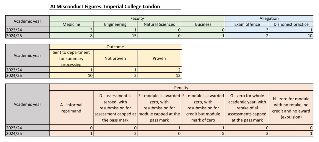 2024/25学年,H级处罚首次落地。帝国理工对AI学术不端的容忍度,正在肉眼可见地收窄。