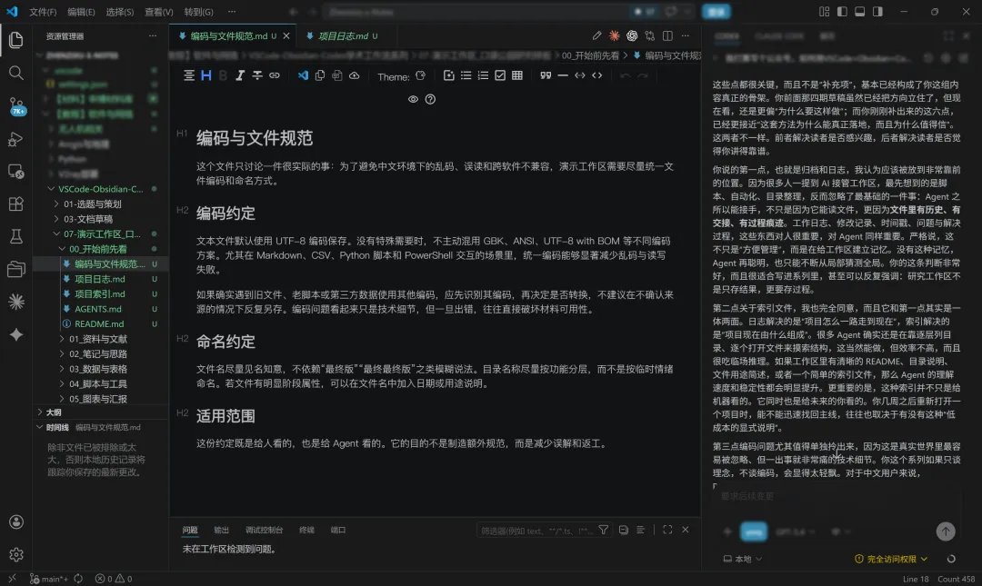 很多人第一次听到“工作区”“Agent”这些词,会觉得它们像程序员世界里的概念,离自己有点远。其实不必这样理解。哪怕你从来没有系统接触过 VSCode,也已经有自己的研究现场了。你放资料的文件夹、写草稿的文档、记笔记的软件、导出图片的目录,这些东西合在一起,本来就是你手头的工作环境。现在真正发生变化的,不是突然多了一个高深的新概念,而是你开始意识到:这些材料如果能被组织得更清楚,再加上一个能够协助处理文件和说明的工具,很多重复性的低效动作就会少很多。OpenAI 在一份关于 agents 的实践指南里把它概括得很直接:"Agents are systems that independently accomplish tasks on your behalf." 这句话并不神秘,它真正点出的,是工具开始从“回答问题”转向“代表你完成一部分工作流程”的变化。