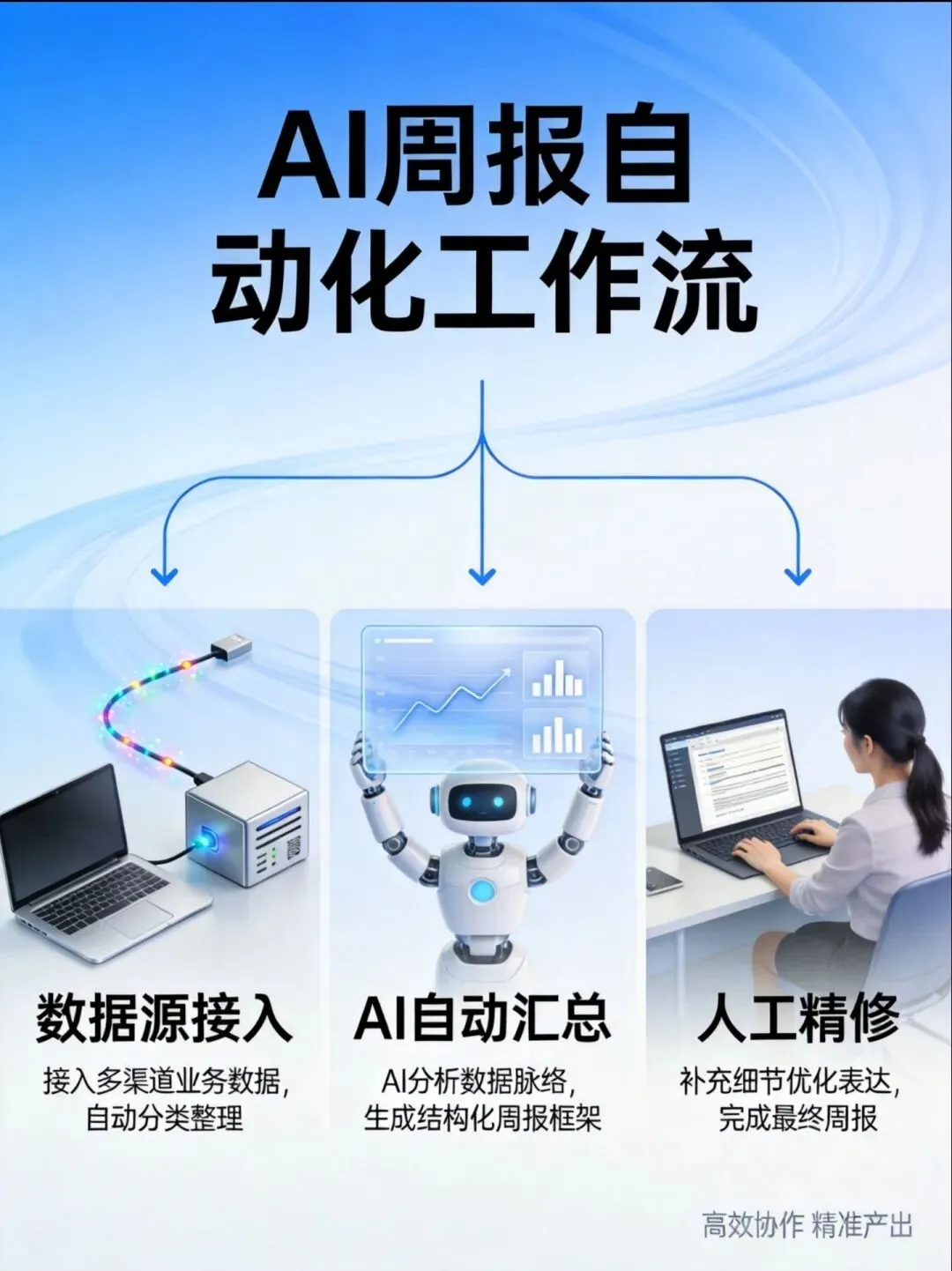技术应该服务人,而不是束缚人。 用这3个模板+AI三步法,夺回被周报“偷走”的时间。