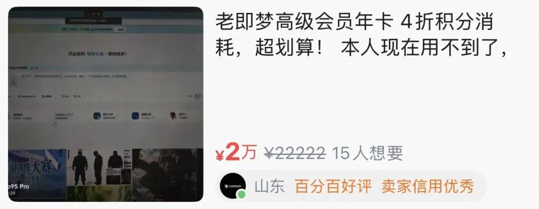 即梦老会员4折卡在二手市场已炒到2万元