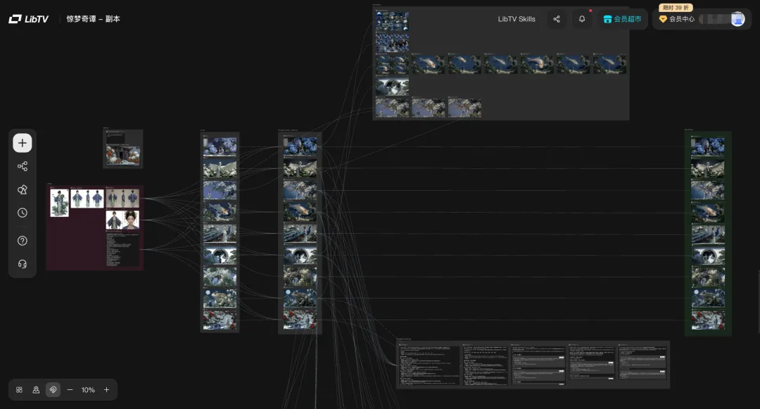 当然,LibTV不仅仅只有真人生成这一个功能。其真正的护城河,在于用“节点式工作流+无限画布”的概念,重新组织了整个AI视频的创作流程。