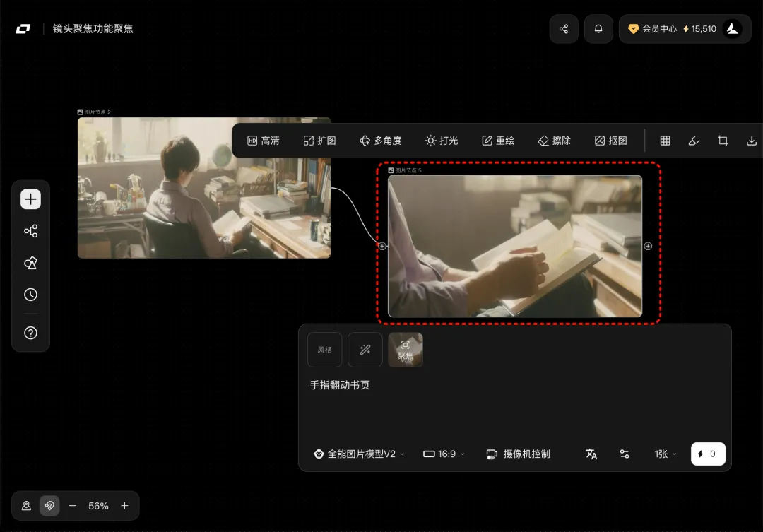 镜头聚焦,直接选中你想要的部分画面、聚焦,生成新的分镜图;