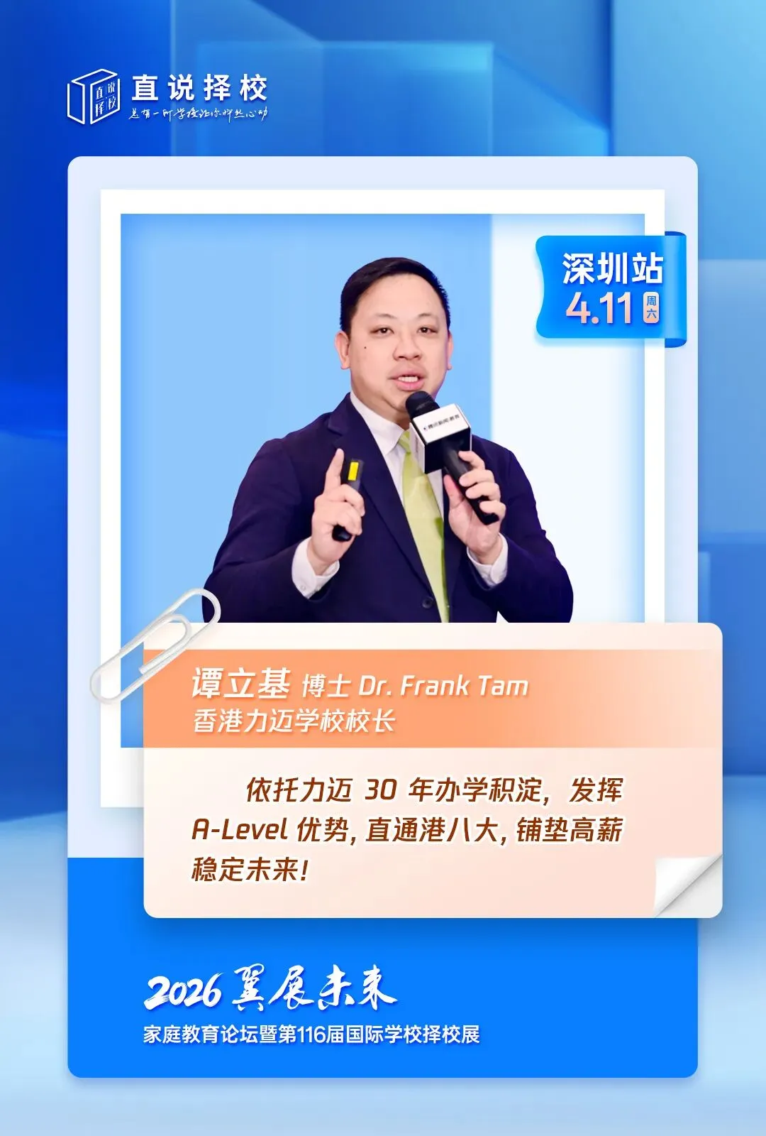 依托力迈教育集团30余年办学积淀,香港力迈学校于去年9月正式开学,香港力迈学校校长谭立基博士Dr. Frank Tam现场分享港八大升学优势与学校办学实力。