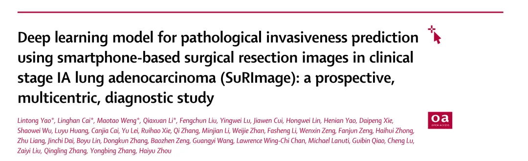文献2 (Lancet Digit Health): SuRImage for clinical stage IA LUAD