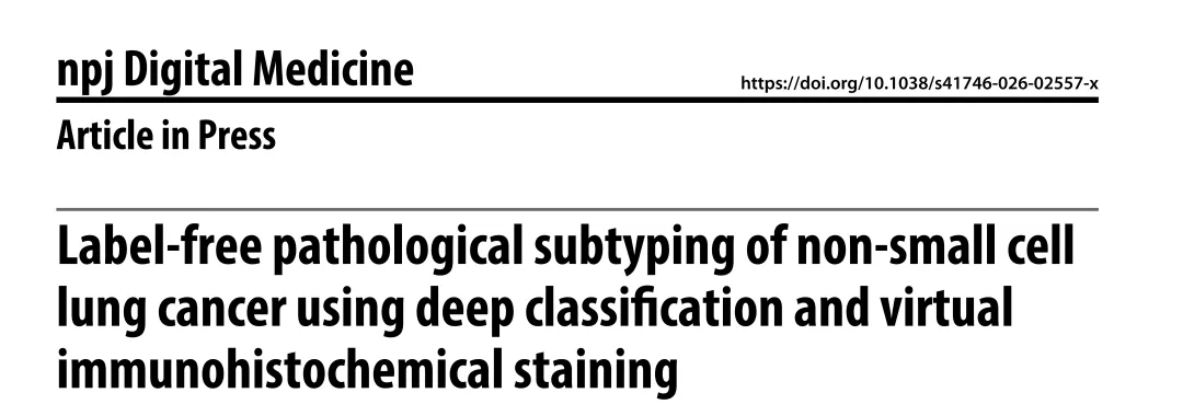 文献3 (NPJ Digit Med): Label-free pathological subtyping