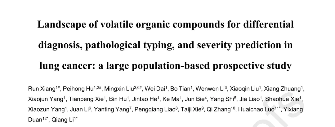 切入点:低剂量CT(LDCT)假阳性率较高。研究切入无创检测,通过气相色谱-质谱(GC-MS)对呼出气体中的挥发性有机化合物(VOCs)进行特征筛选,构建良恶性与严重程度预测模型。