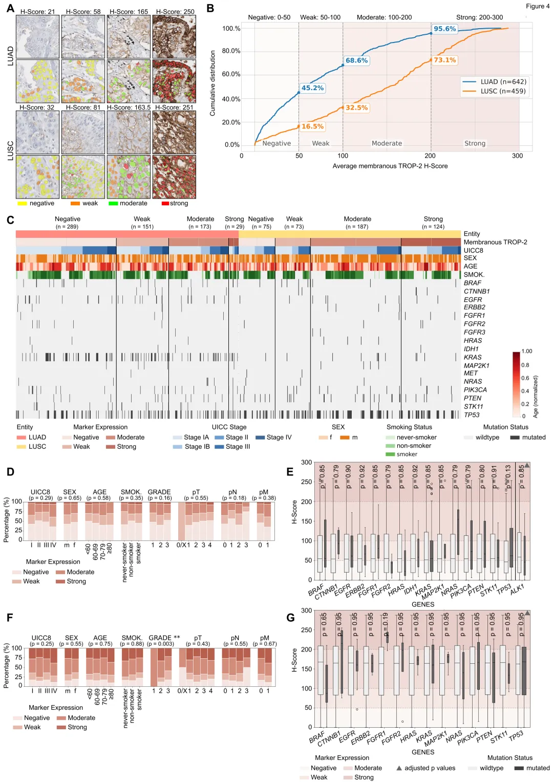 切入点:ADC药物靶点(TROP-2、cMET)的常规免疫组化(IHC)评估存在主观性。研究将其转化为基于全切片或组织芯片(TMA)的AI连续评分(H-score)问题,以实现定量的空间异质性分析。