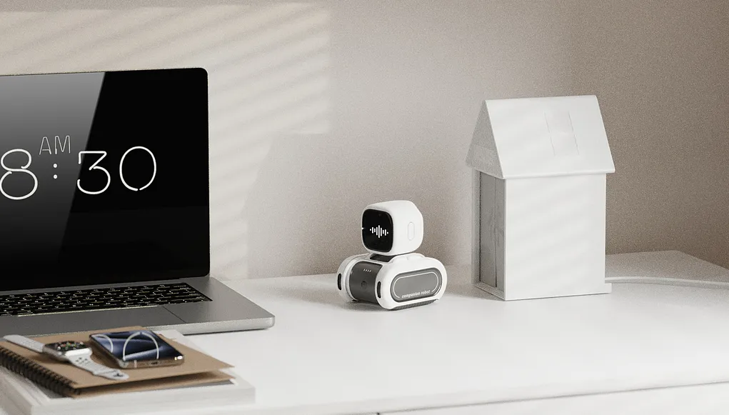 桌面机器人默默(Momo),承载了一种全新的 “温柔陪伴与离别告别” 交互体验 —— 它不是一款 “被使用” 的工具,而是一个能与用户建立轻盈情感联结的 “陪伴者”。