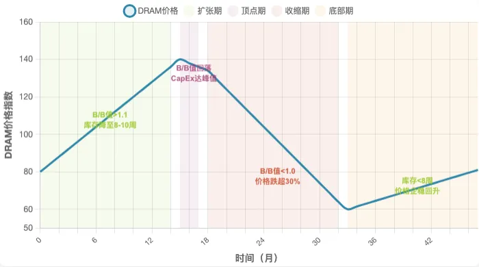 对于观察者,关键在于理解周期本质——DRAM周期是资本支出周期、库存周期、需求周期三重重叠的结果,其中资本支出周期是主导因素。