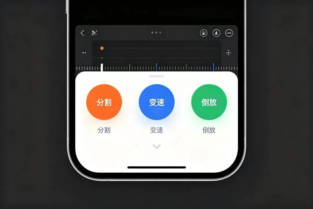 导入素材时,可按顺序批量选择视频、图片、音频,长按素材就能拖动调整顺序;手机端的「分割」「删除」「变速」「倒放」基础按键,在专业版时间轴上,位置和操作逻辑完全相同。